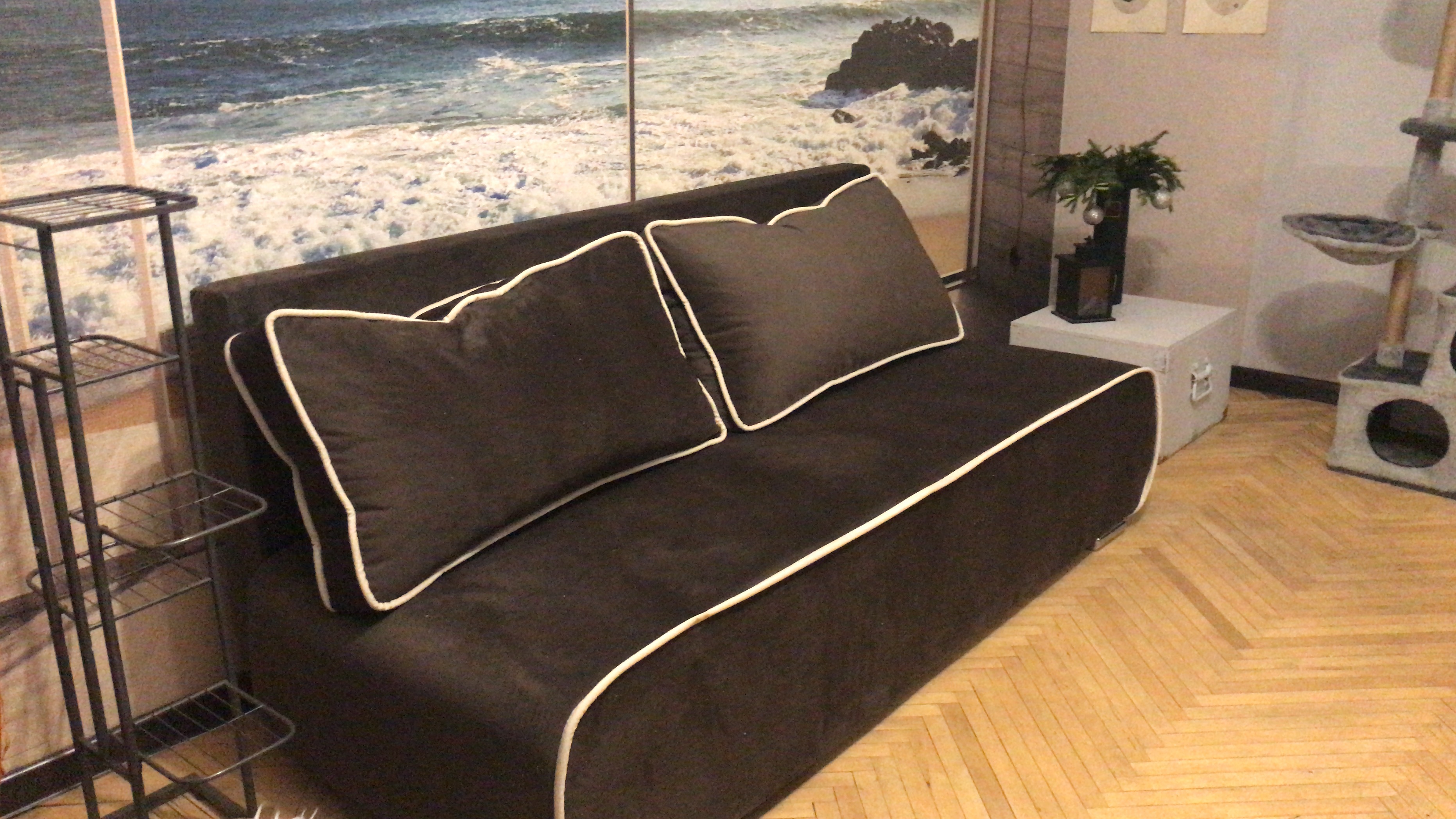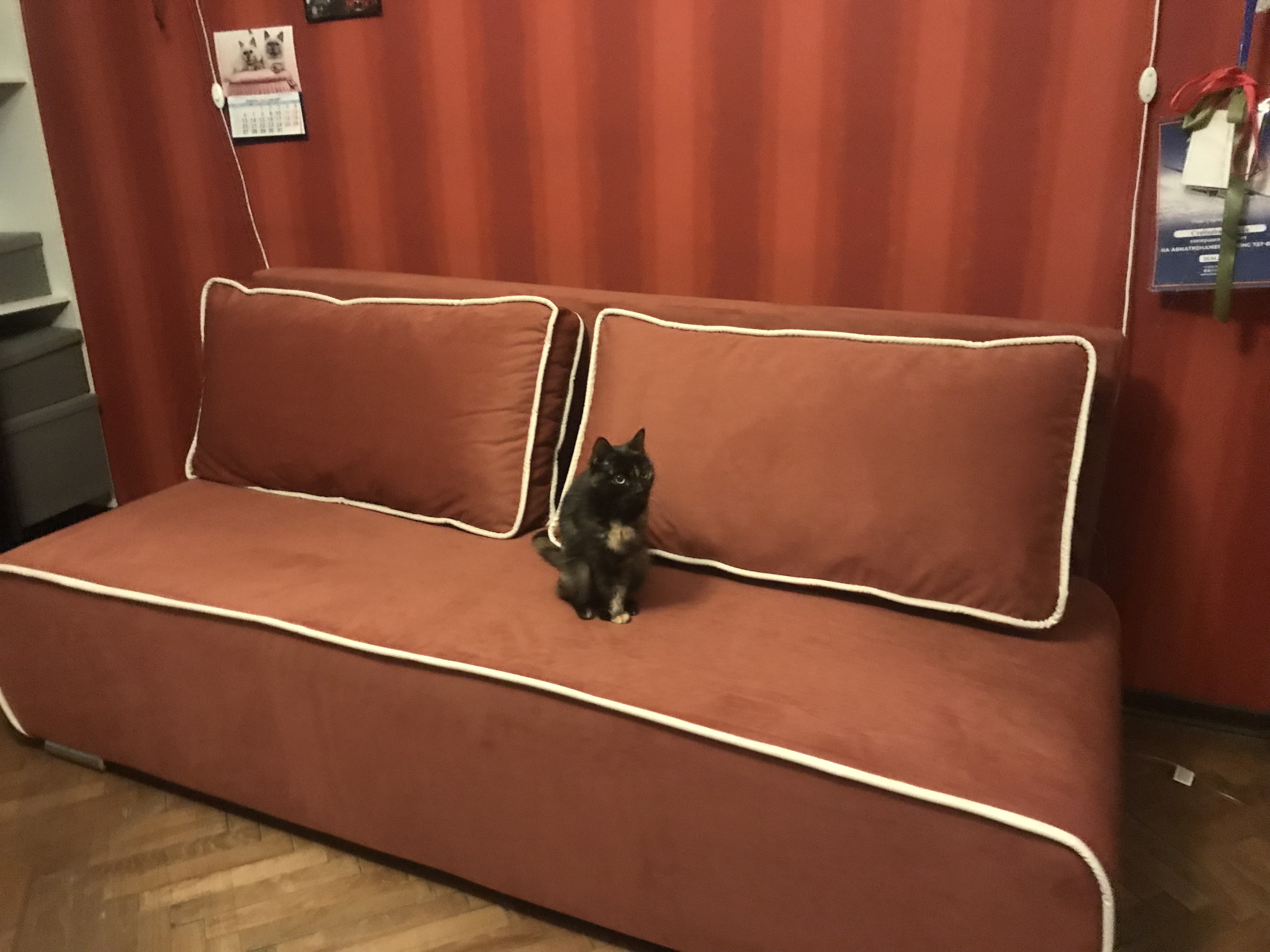 Диван стал украшением комнаты, всё аккуратно сделано, ткань напоминает бархат, приятная на ощупь и с цветом мы угадали!