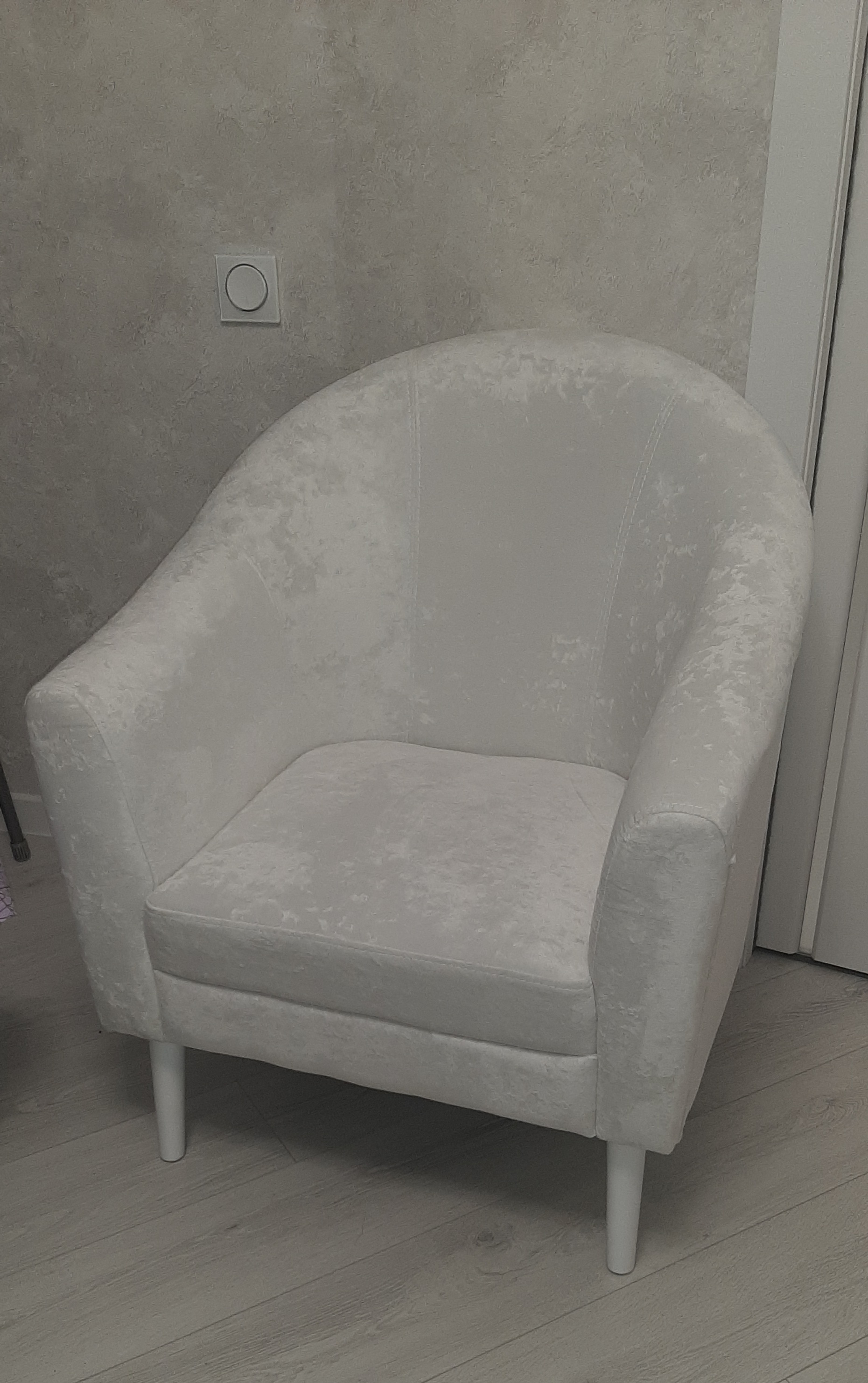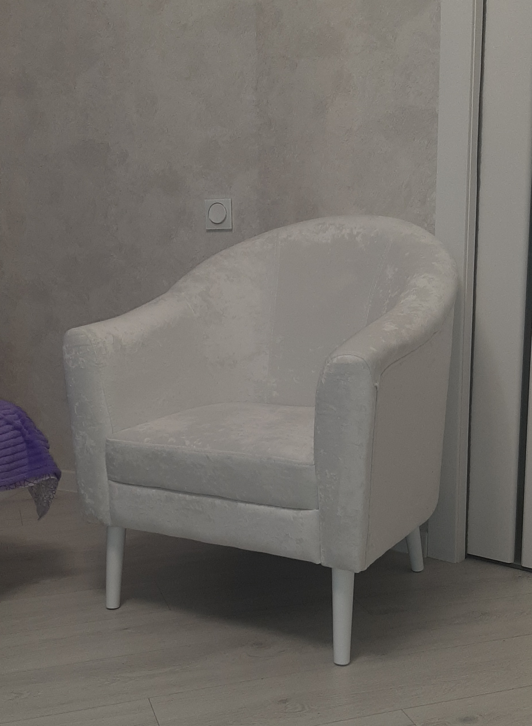 Симпатичное кресло, кантики и пуговицы, как декоративная отделка в одной ткани. Посадка удобная.